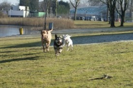 Veni, vidi, vici! Cu alte cuvinte Schatzi si-a gasit singura stapan si parteneri de zbenguiala: trei catei si trei pisicute.